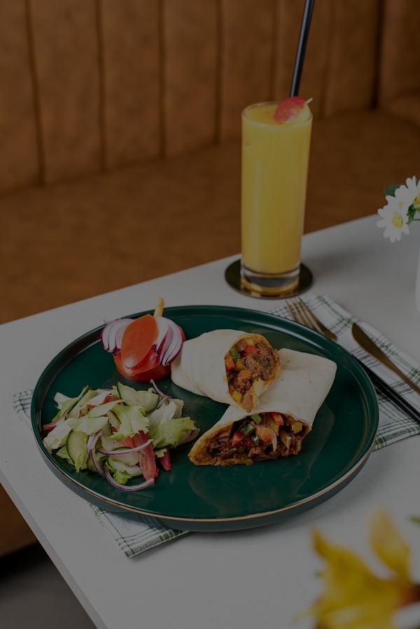 Wrap your taste buds in a whirlwind of bold flavors! Our expertly crafted wrap is packed with a deliciously spiced filling, served alongside a fresh salad for the perfect balance of crunch and zest.
